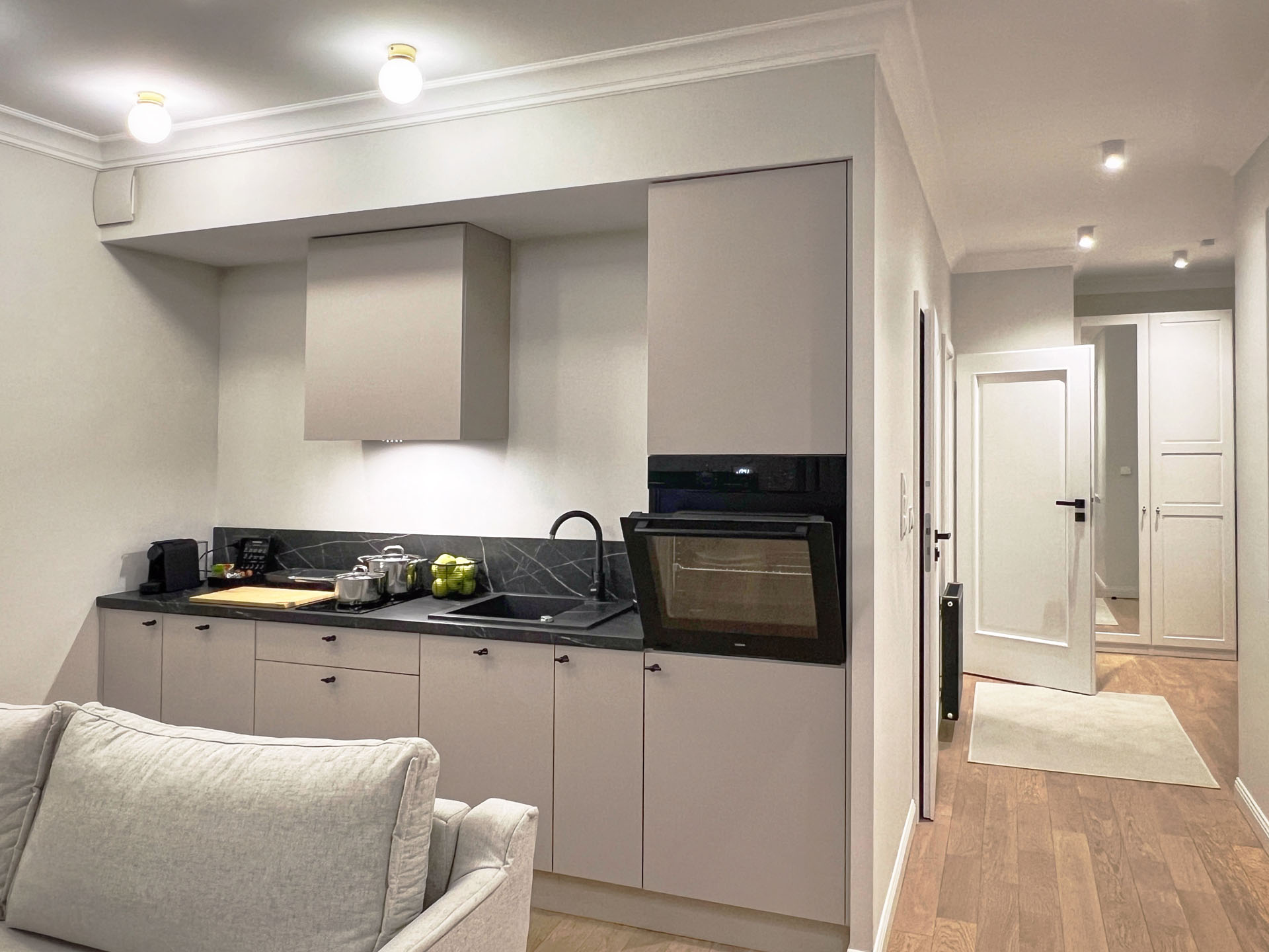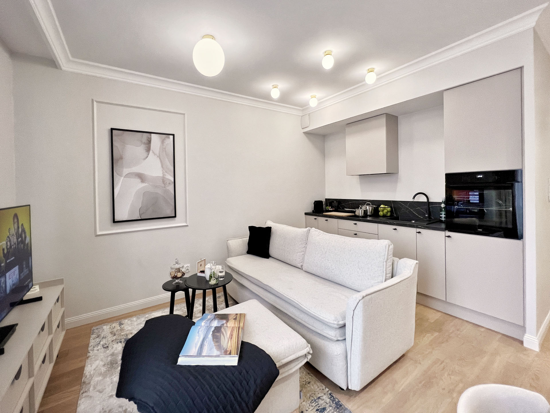 Przestronny, jasny apartament z dwoma sypialniami i salonem z wygodnym aneksem kuchennym.